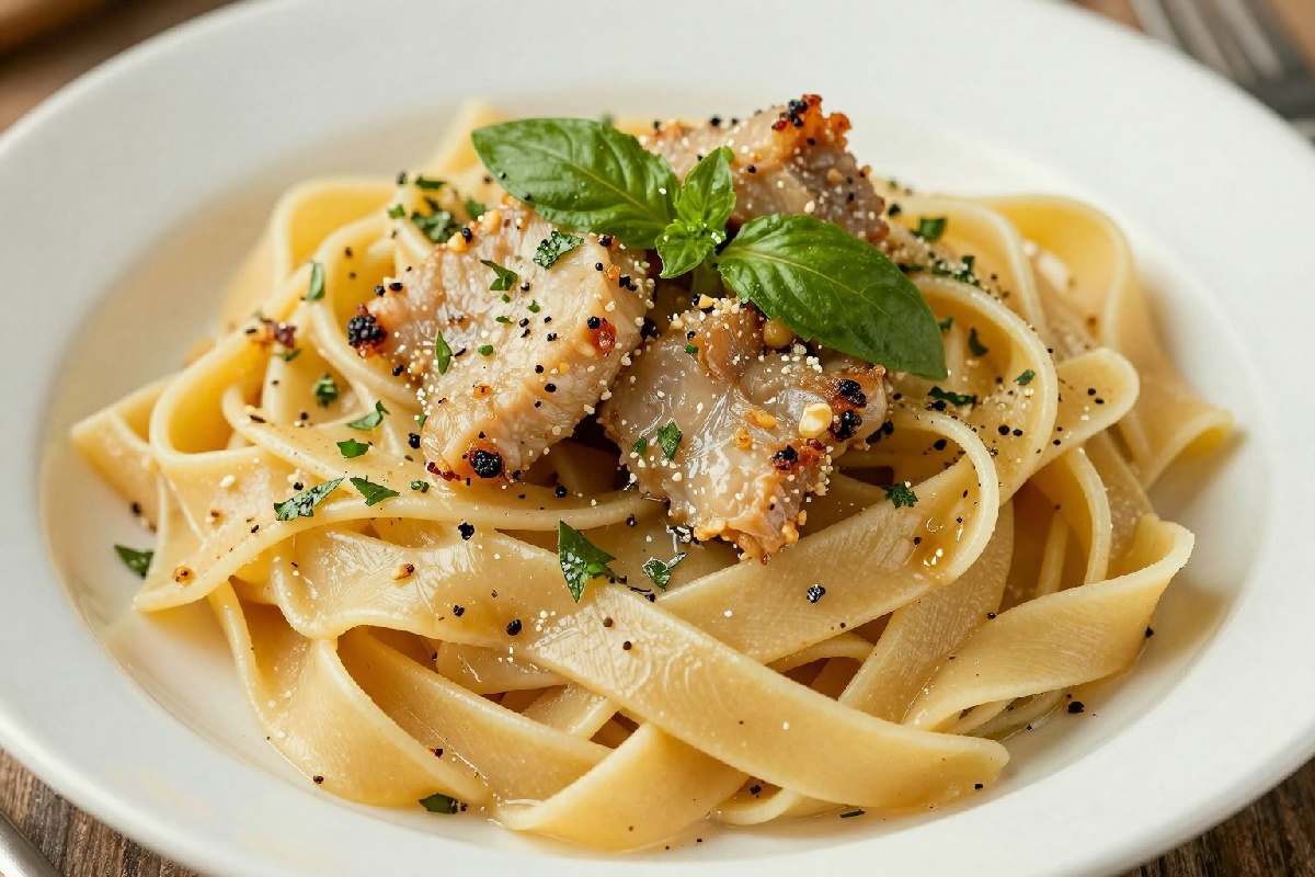 - Servire: impiatta la pasta e guarnisci con prezzemolo fresco tritato e un filo d’olio extravergine a crudo. Il piatto è pronto per essere gustato.